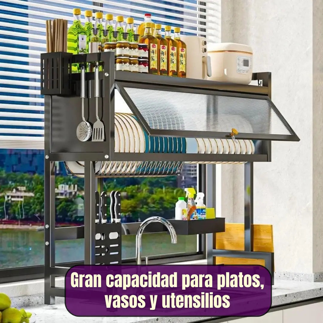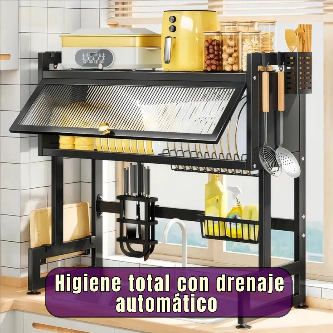La solución es más fácil de lo que crees: El Platero Escurridor con Tapa te da orden, higiene y espacio… sin remodelar.👏